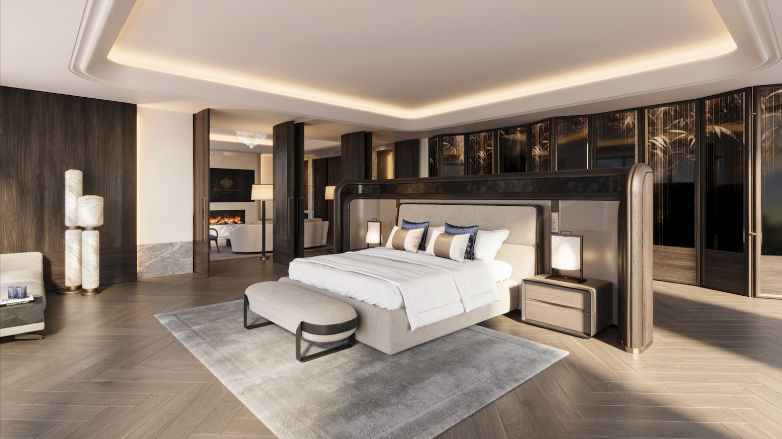 Emphasize the luxurious interior design, imported from all over the world