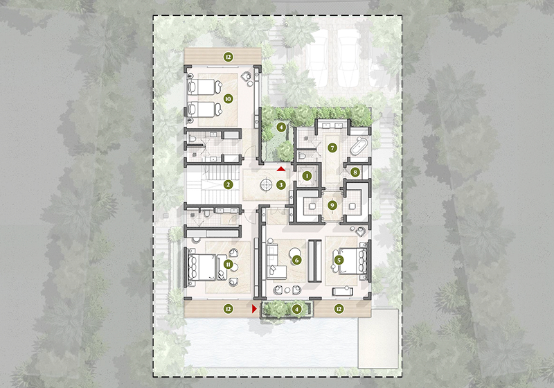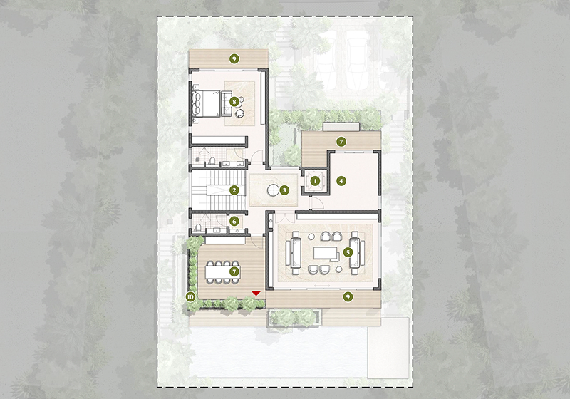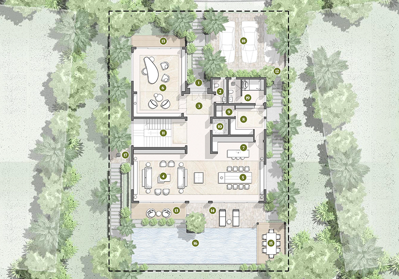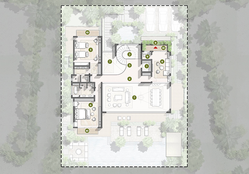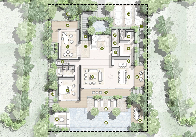 Each villa is an unmatched masterpiece of space and light, opening to breathtaking golf views and effortless indoor–outdoor living. This sense of openness is anchored by timeless natural stones, shaping the grounds for refined architectural details to thrive. While private pools invite year-round indulgence, the soaring ceilings across most villas types elevate the living experience with a sense of boundless elegance.